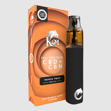 Let your worries go and settle in for a peaceful slumber. Koi Full Spectrum CBD + CBN Disposable Vape Bars are made with a soothing blend of full-spectrum CBD, CBN, and calming Papaya Twist strain terpenes to promote tranquility and restful sleep. This 2-gram disposable vape pen comes ready to go and features a high-grade ceramic coil heating element and preheat functionality for smooth draws before you drift off.